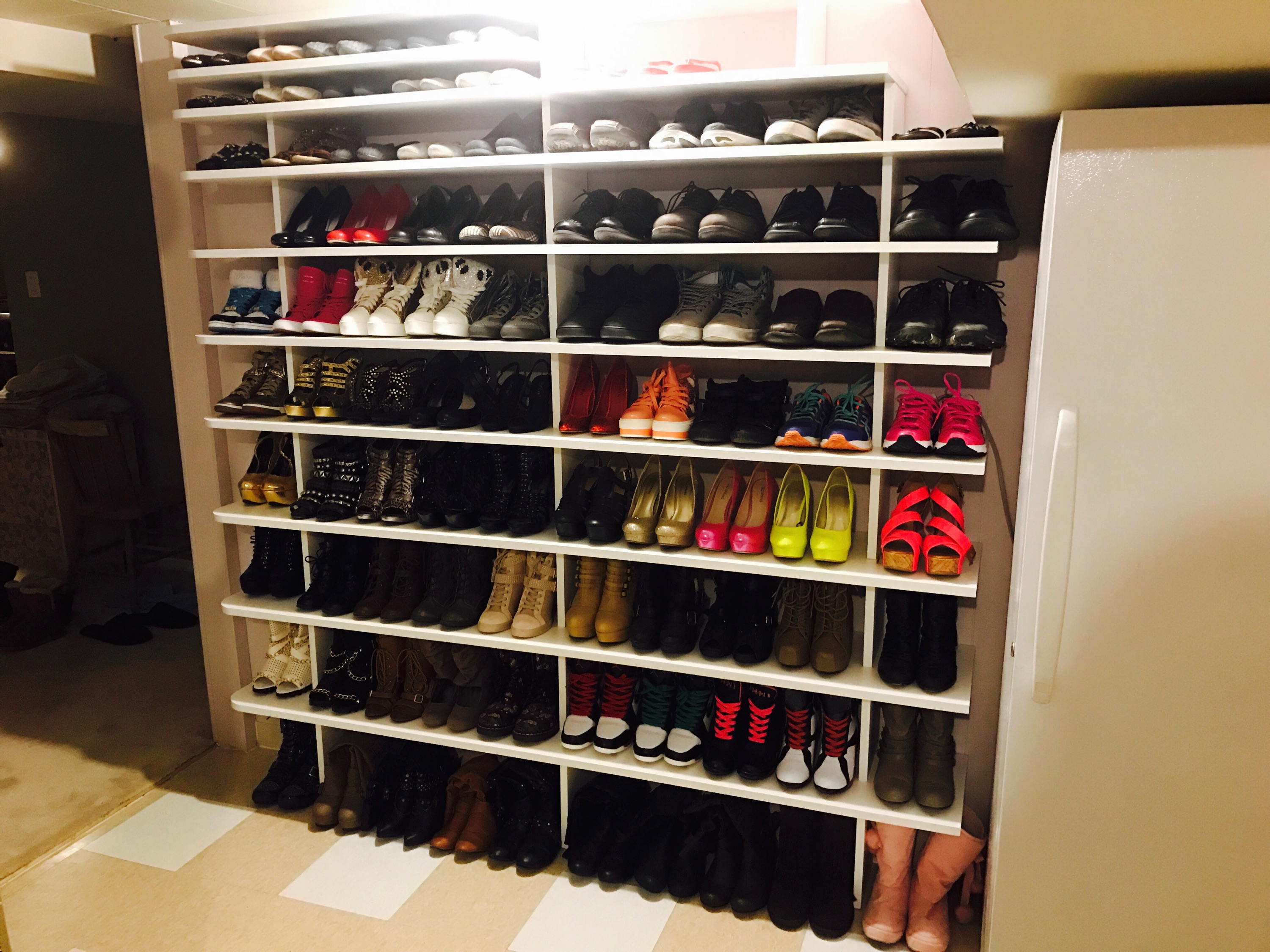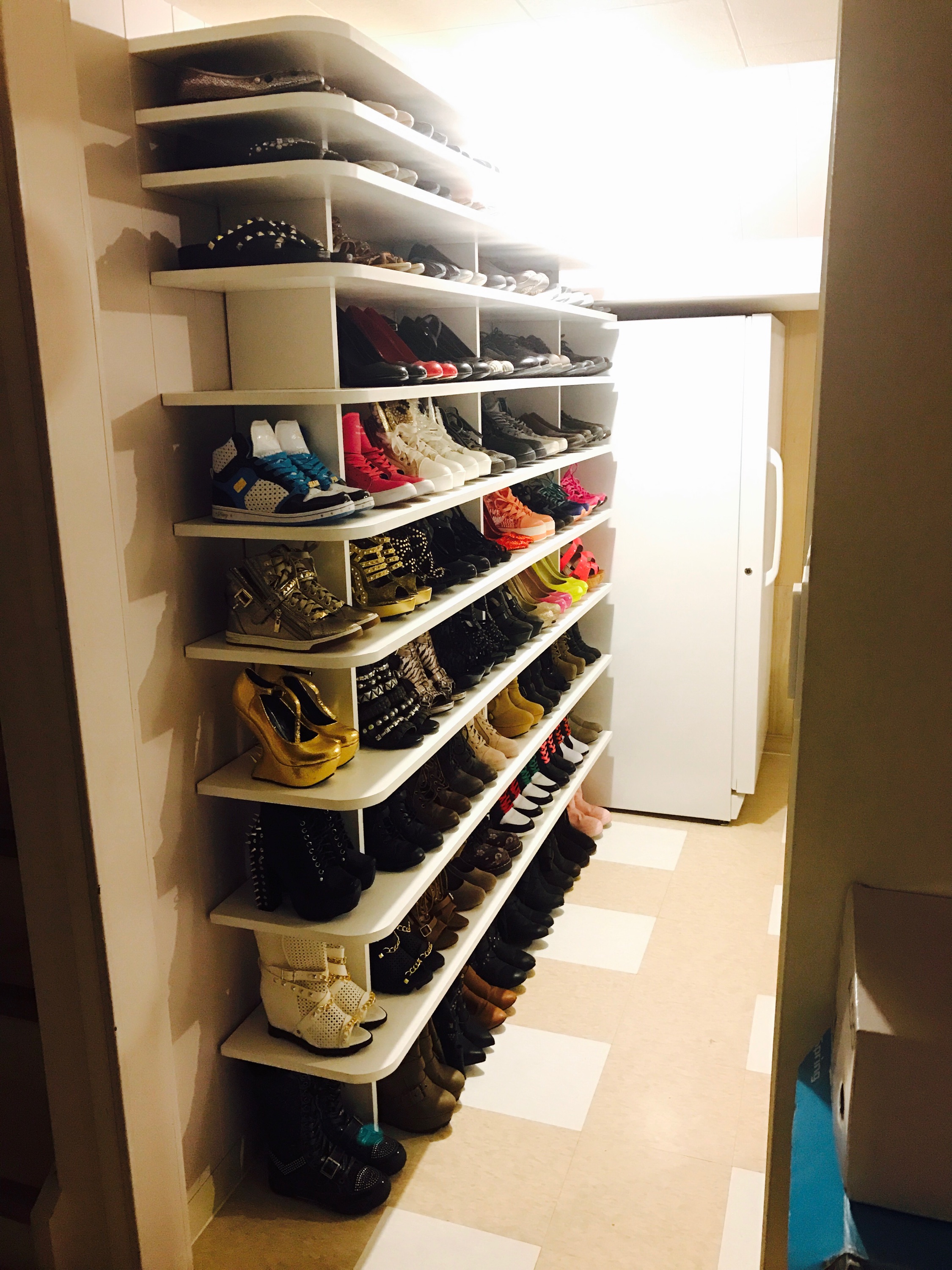 Chrystina needed a shoe rack so I designed and made this for our laundy room.